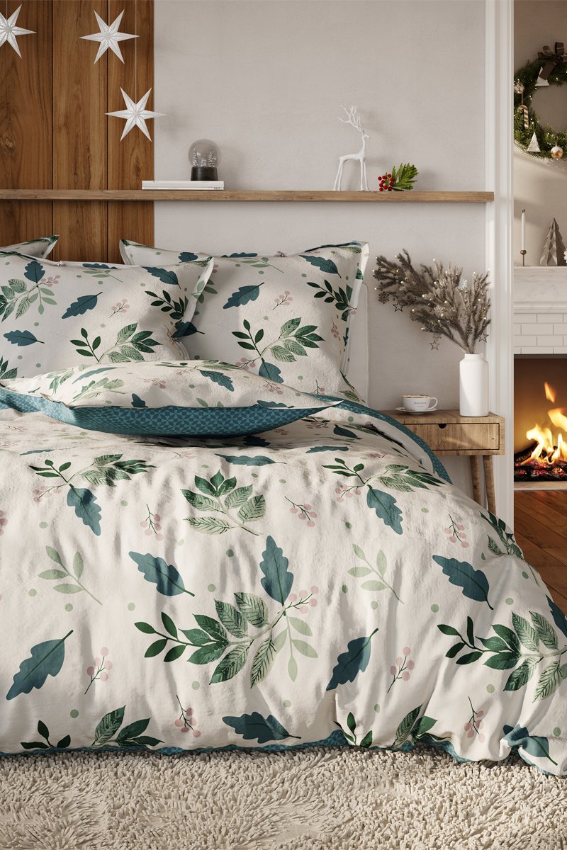 Parure copripiumino in flanella di cotone Gabriel - Bianco e verde