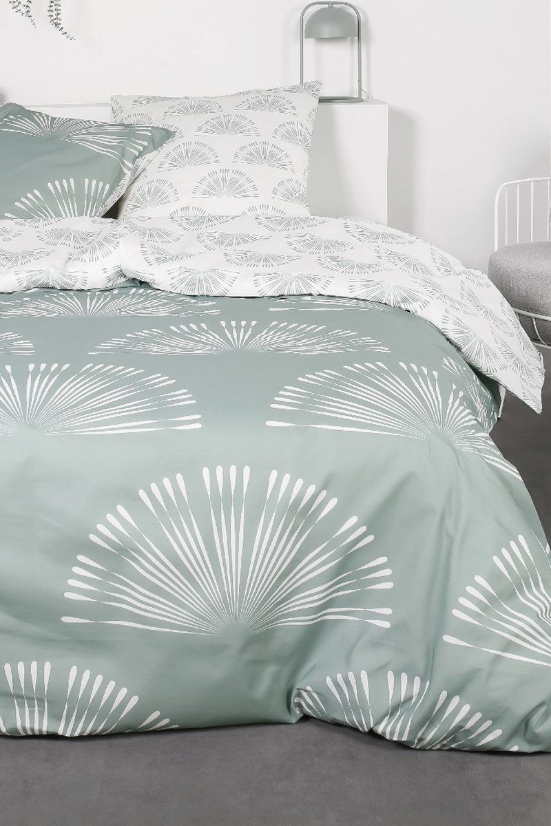 Parure copripiumino in cotone Flanelle - Verde ed ecrù