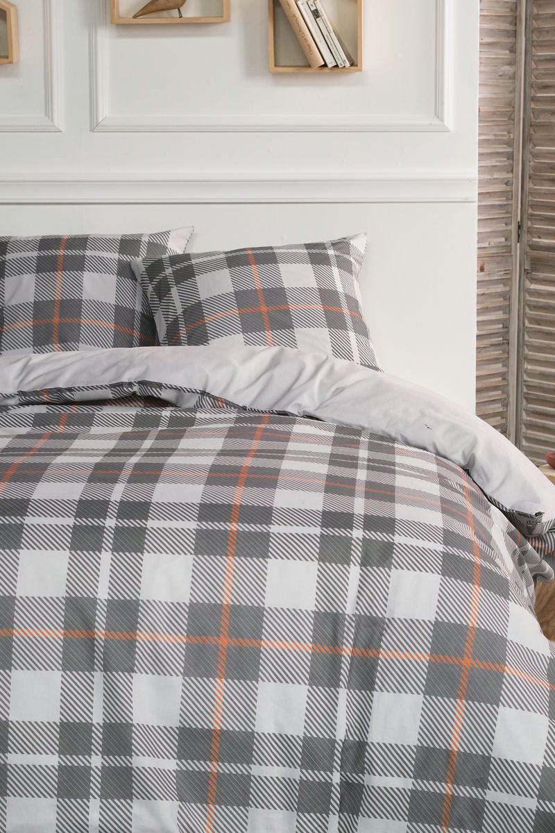 Parure copripiumino in cotone Flanelle - Grigio ed ecrù