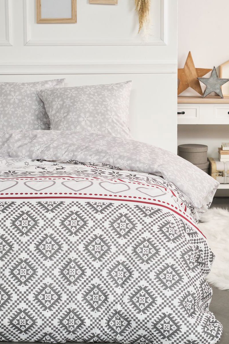 Parure copripiumino in cotone Flanelle - Grigio ed ecrù
