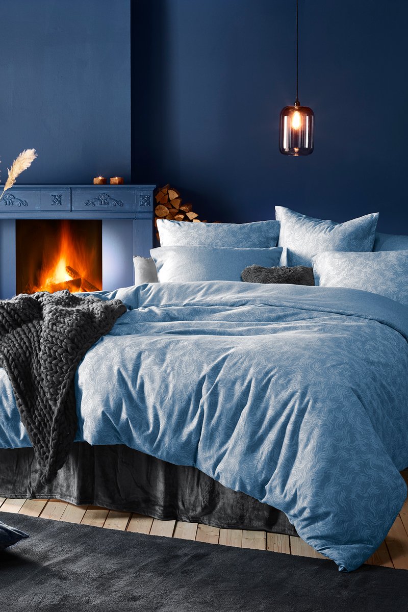 Parure copripiumino in flanella di cotone Alvaro 150 fili/cm² - Celeste