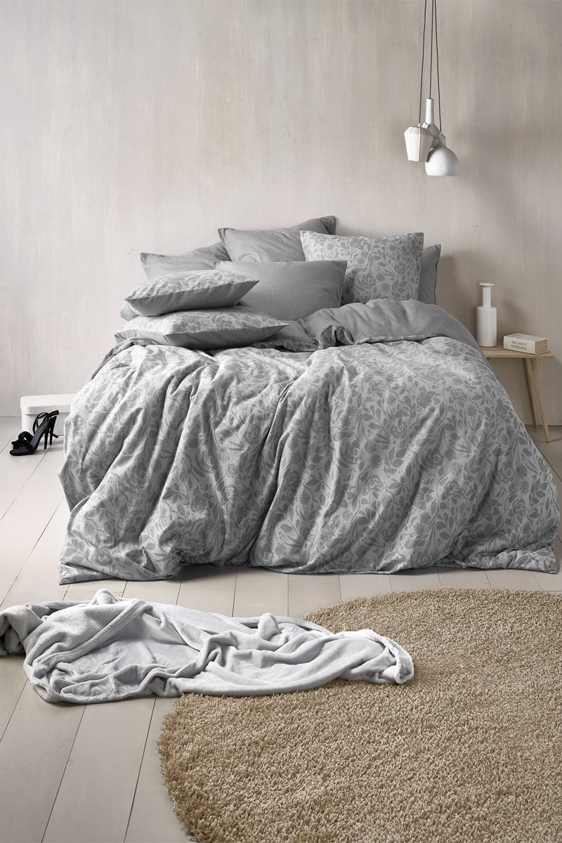 Parure copripiumino in flanella di cotone Imprimée 160 g/m² - Grigio neutro