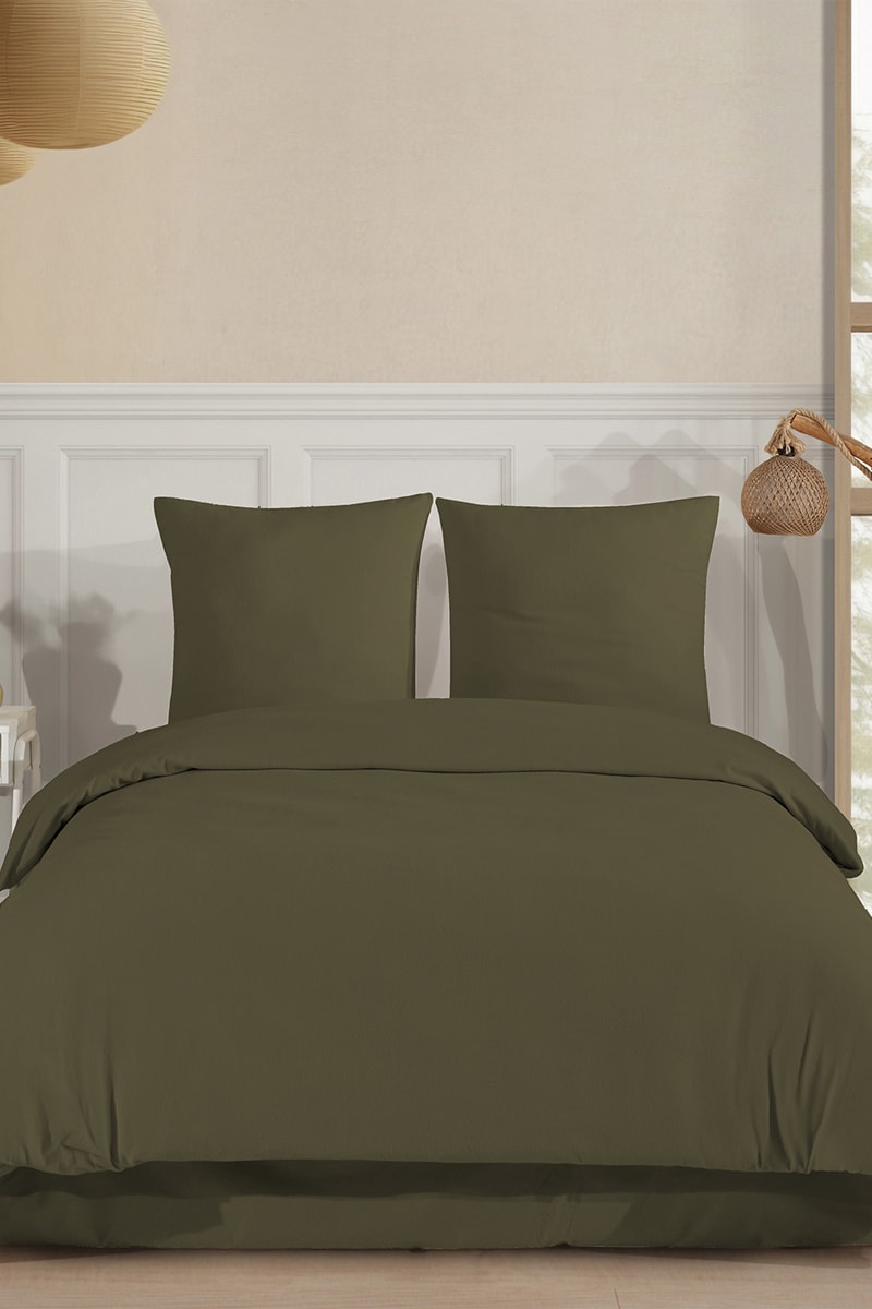 Parure copripiumino in flanella di cotone 160 g/m² - Kaki