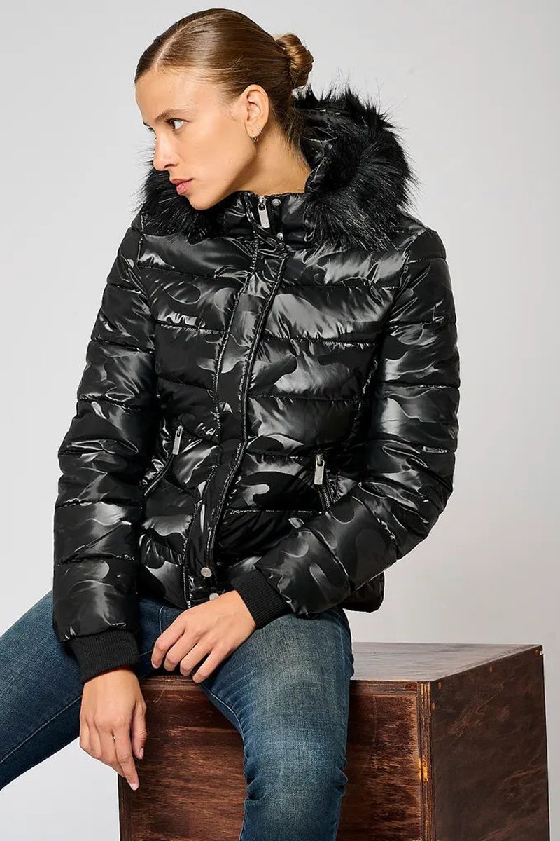 Piumino regular con cappuccio in pelliccia a maniche lunghe.