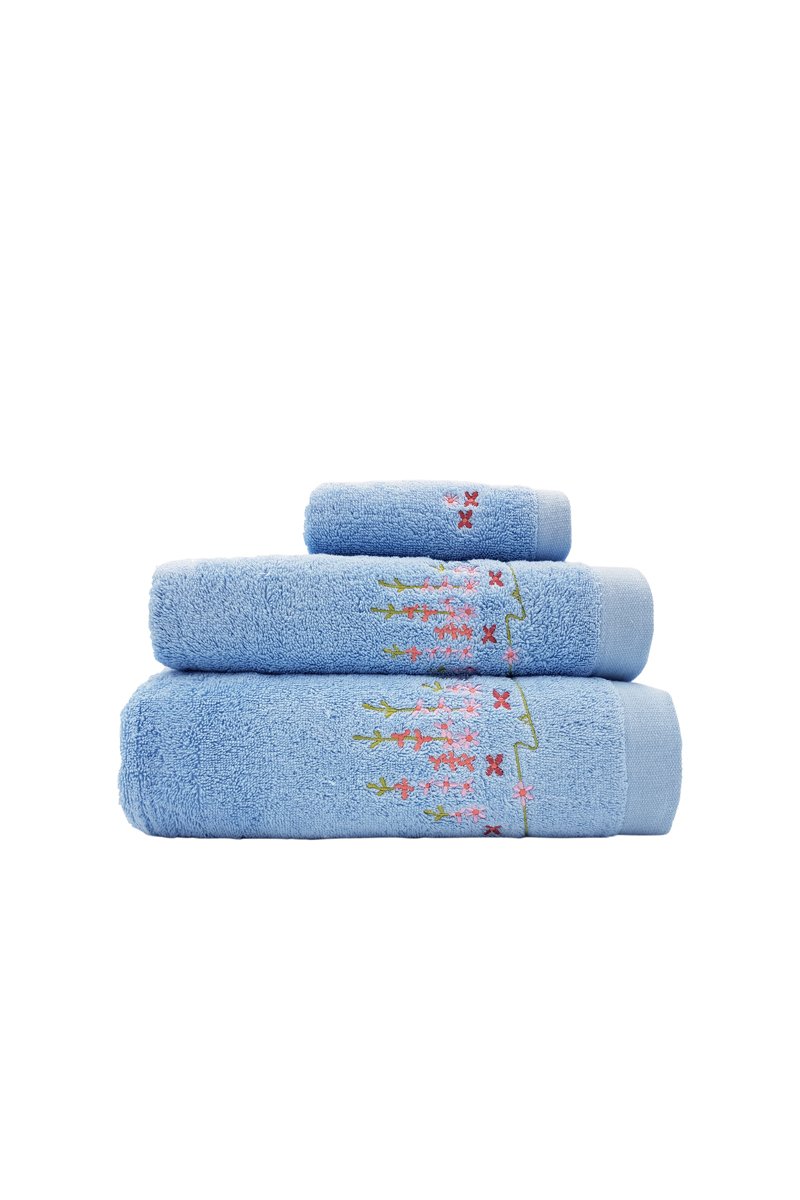 3 asciugamani - Celeste e corallo