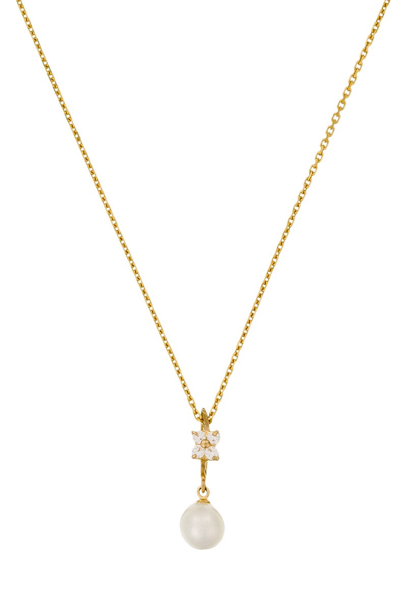 Ciondolo in oro giallo con zirconi e una perla sintetica.