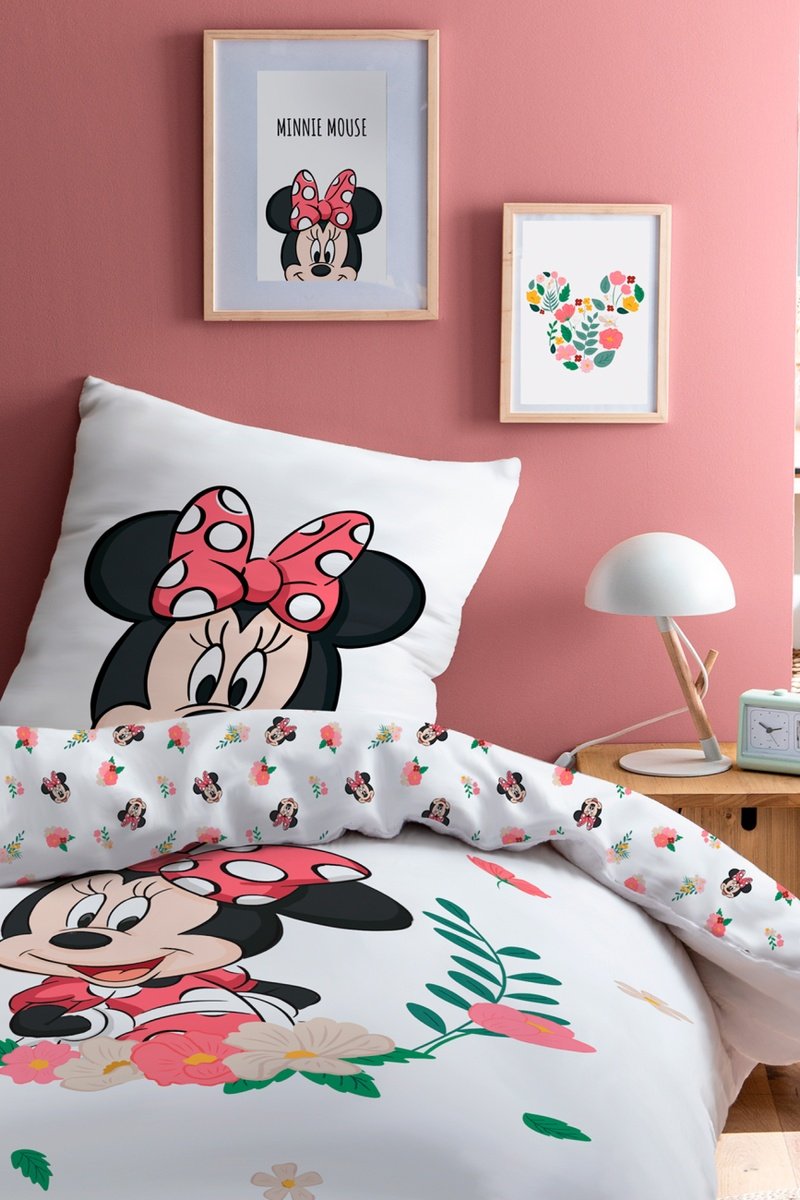 Parure copripiumino in cotone Minnie Disney - Bianco e rosa
