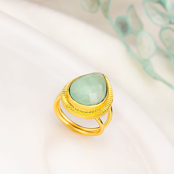 Anello - Ottone placcato oro & amazzonite