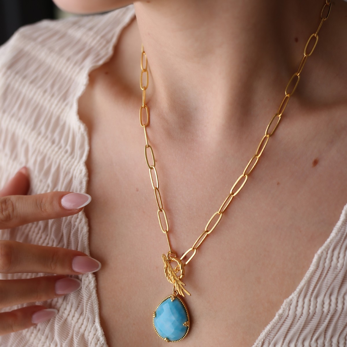 Collana - Ottone placcato oro e turchese