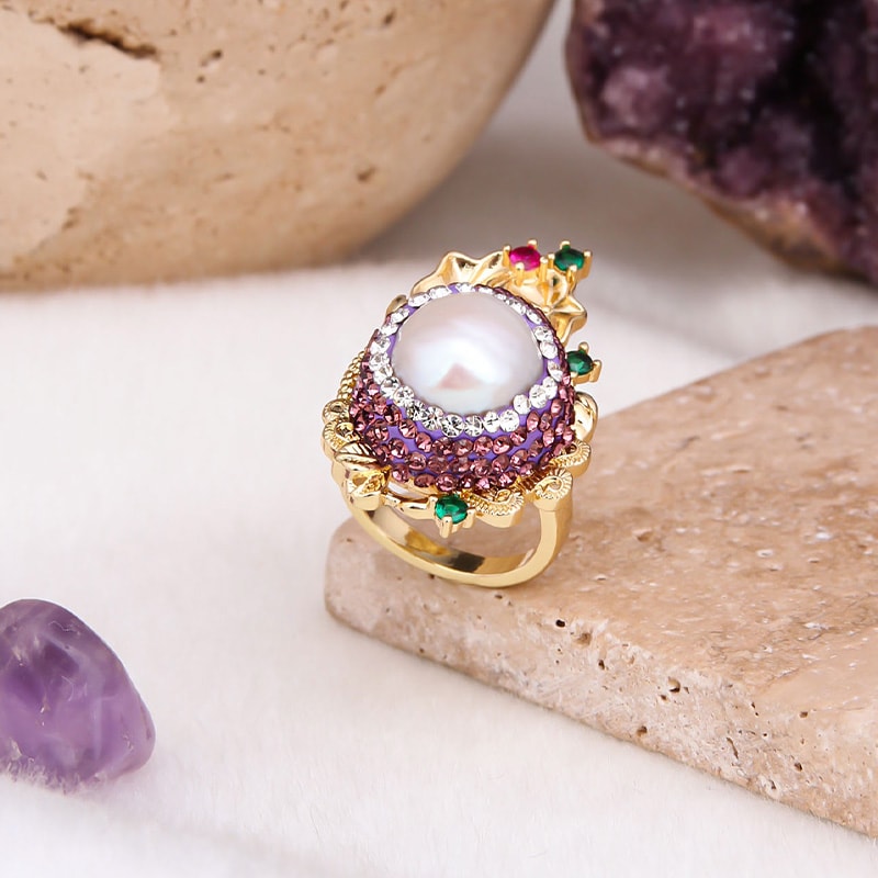 Anello - Ottone placcato oro e perla