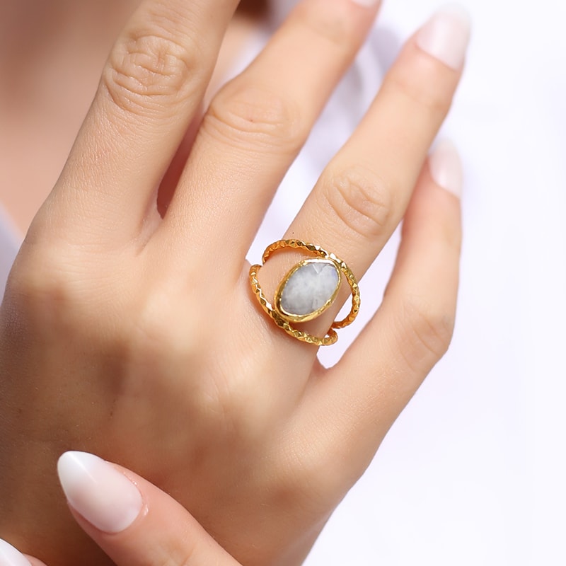 Anello - Ottone placcato oro, pietra di luna & amazzonite