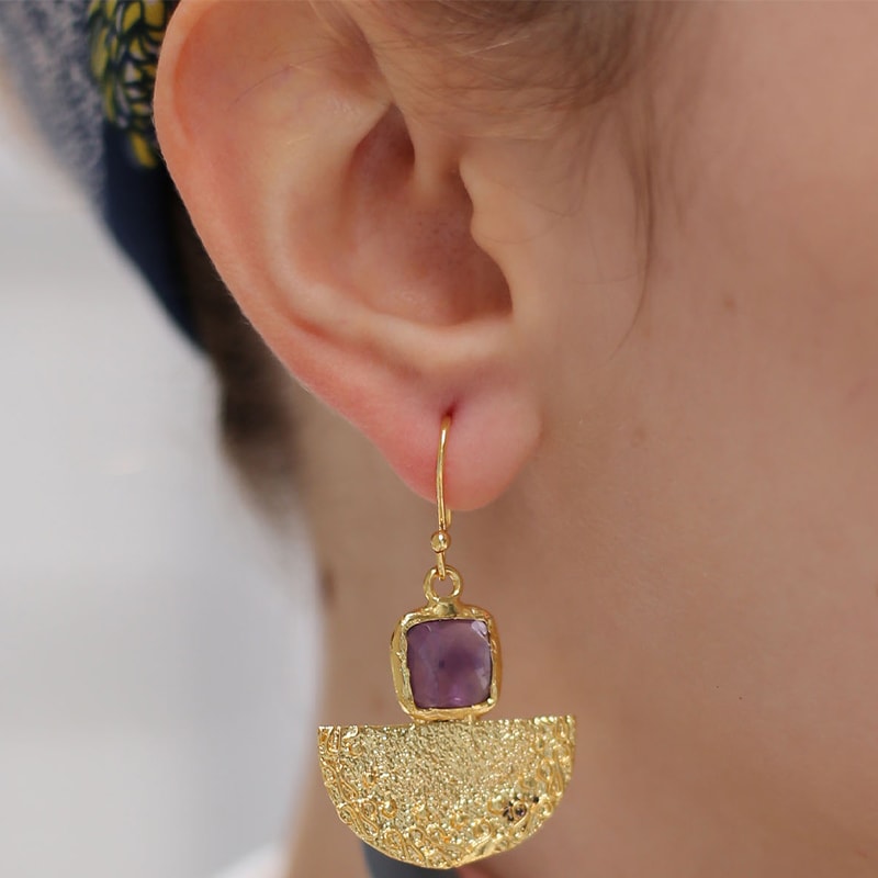 Scegli questi orecchini in ottone placcato oro con ametista. Eleganti e leggeri, daranno un tocco glamour e sofisticato a tutti i tuoi outfit!