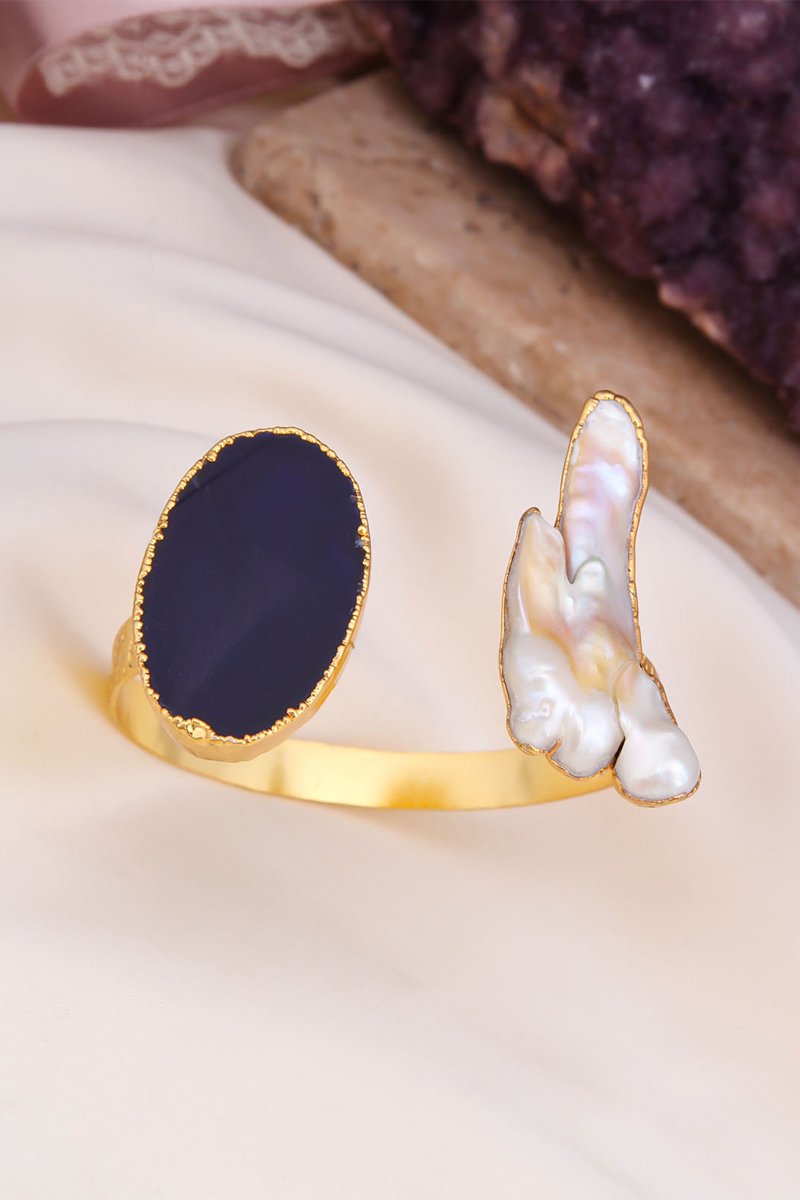 Bracciale bangle aperto placcato oro giallo con un’ametista e una perla di imitazione.