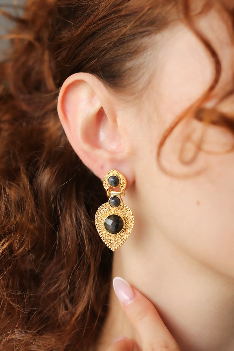 Orecchini pendenti con 3 labradoriti.