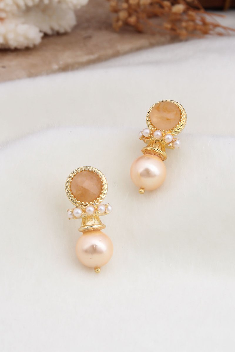 Orecchini pendenti placcato oro giallo con un citrino e perle di imitazione.