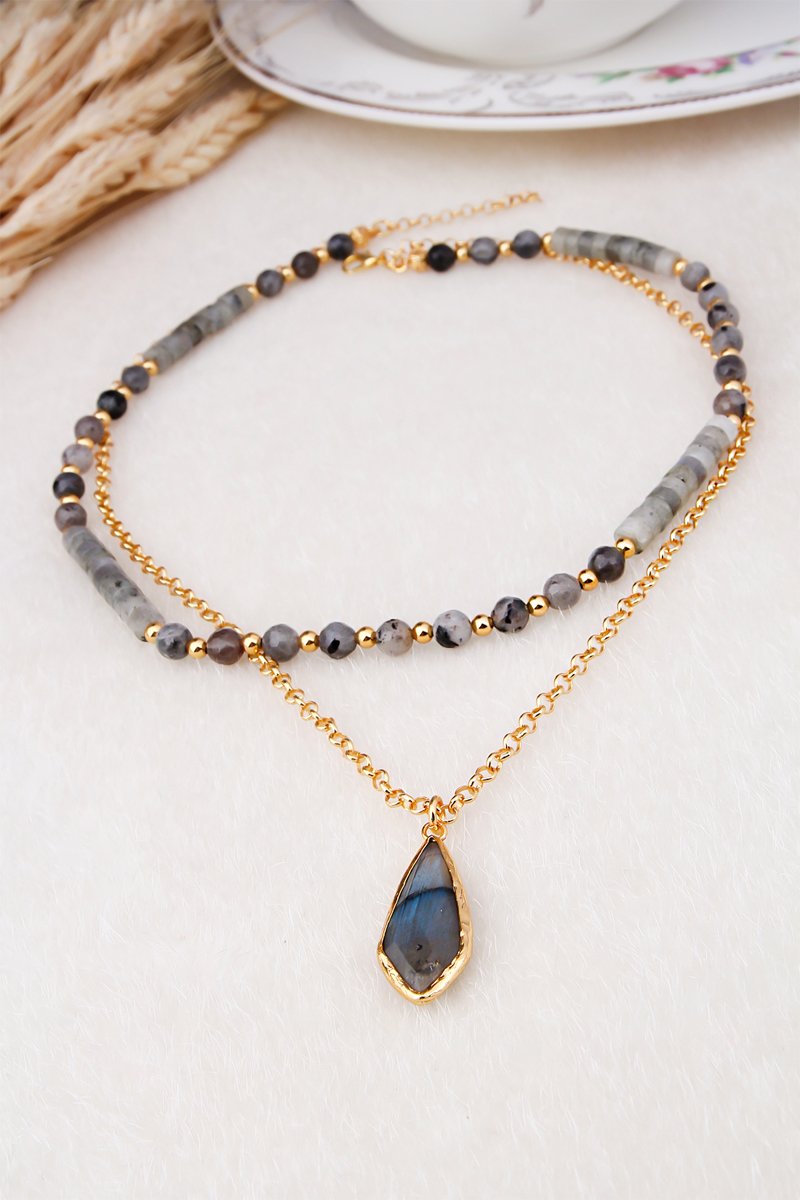 Collana laminato oro giallo con labradorite.