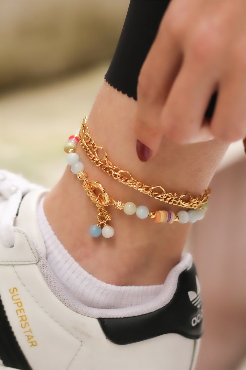 Cavigliera 3 giri - Laminato oro giallo, morganiti e madreperla
