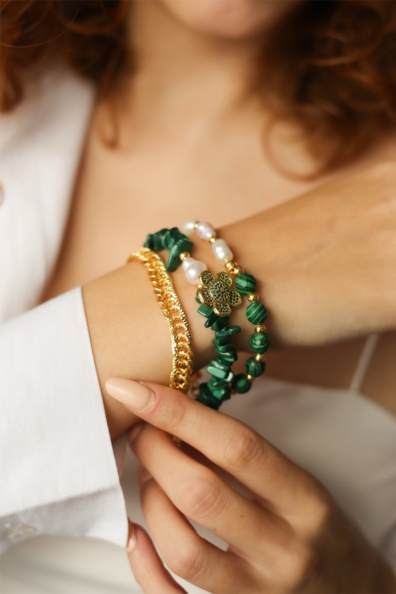 Bracciale - Malachiti e zirconi