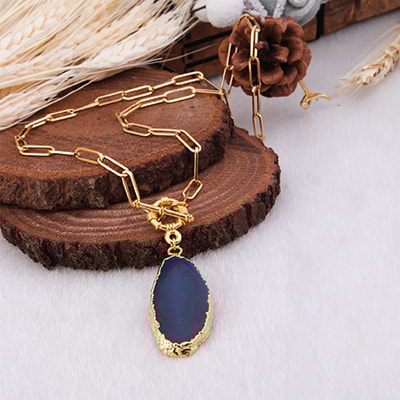 Scegli il fascino di questa collana in ottone placcato oro con una pietra di agata blu notte. Il design elegante e senza tempo di questo bijou darà un tocco sofisticato a tutti i tuoi outfit, mettendo in risalto la profondità e la bellezza unica della pietra. We love it!