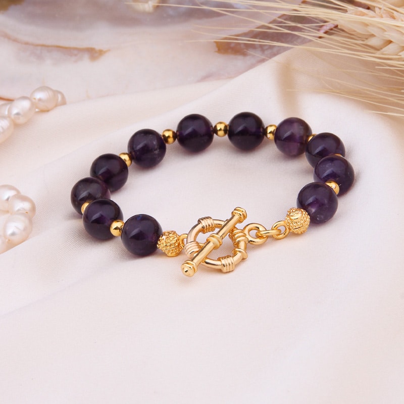 Bracciale in ottone placcato oro con ametiste.