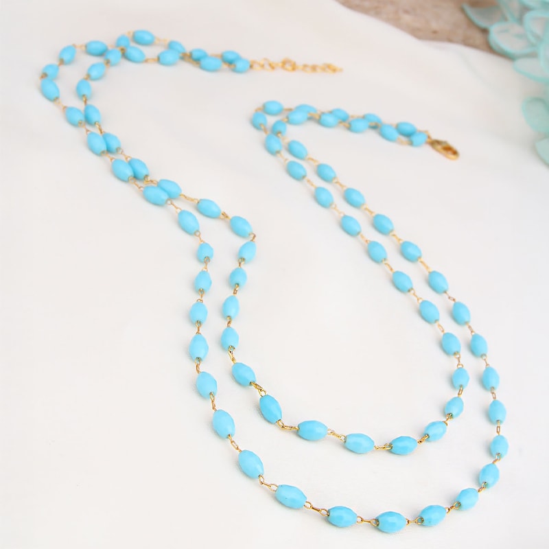 Collana - Ottone placcato oro e pietre naturali turchesi