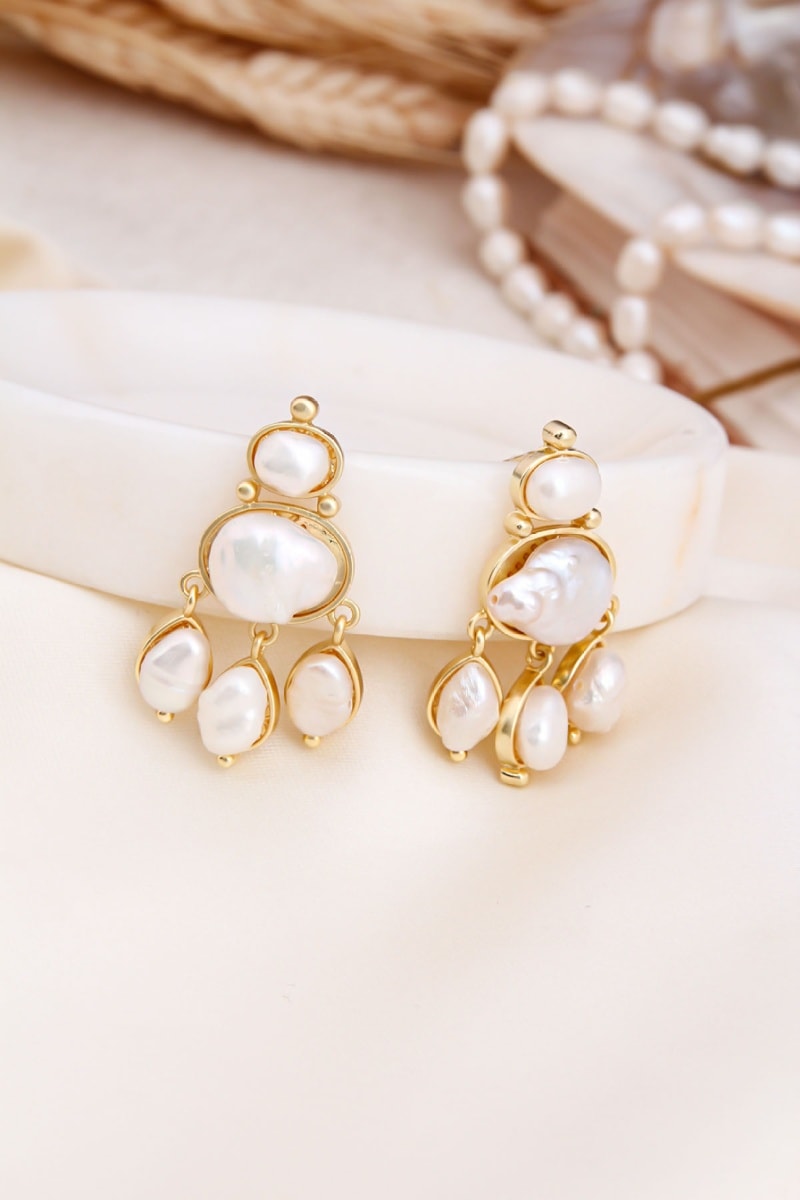 Orecchini placcato oro giallo con 5 perle coltivate.