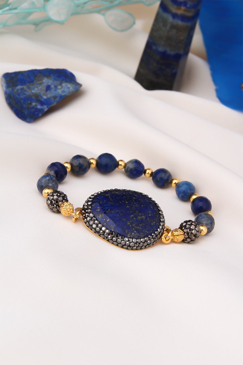 Bracciale laminato oro giallo con lapislazzuli.