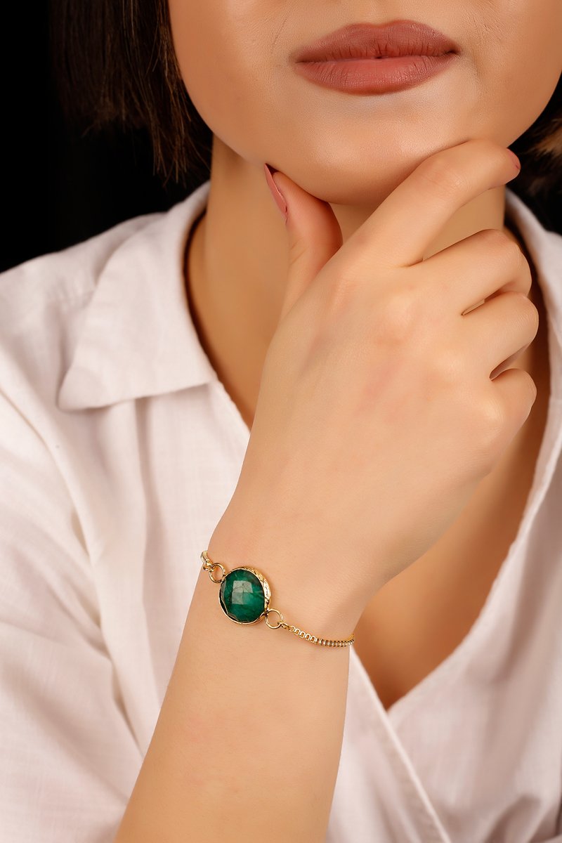 Bracciale laminato oro fino giallo con un’agata.