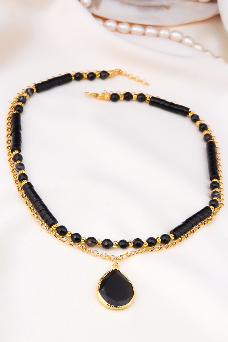Collana - Placcato oro giallo, onice e occhi di tigre
