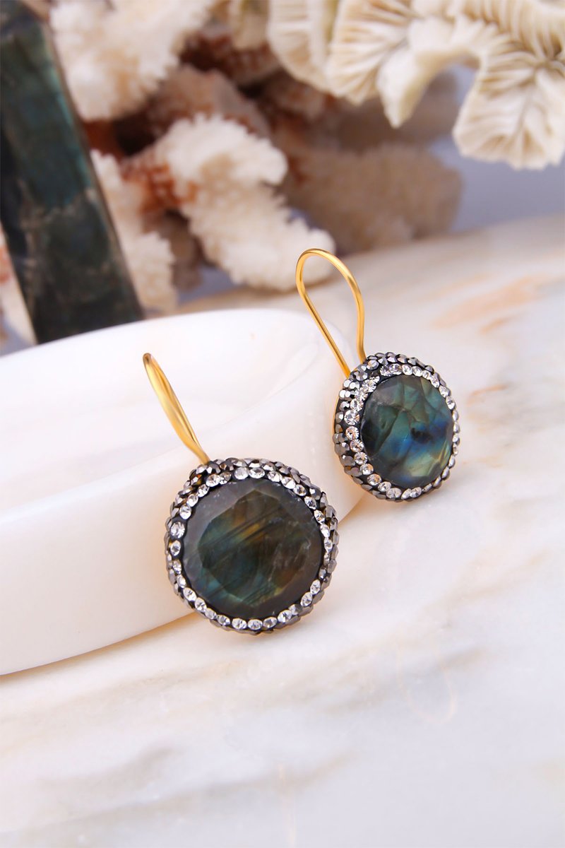 Orecchini - Labradoriti e zirconi - Placcato oro giallo