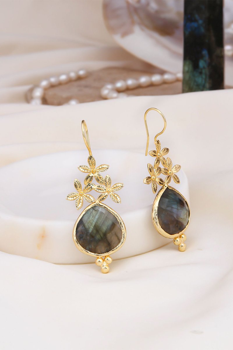 Orecchini pendenti laminato oro giallo con una labradorite.