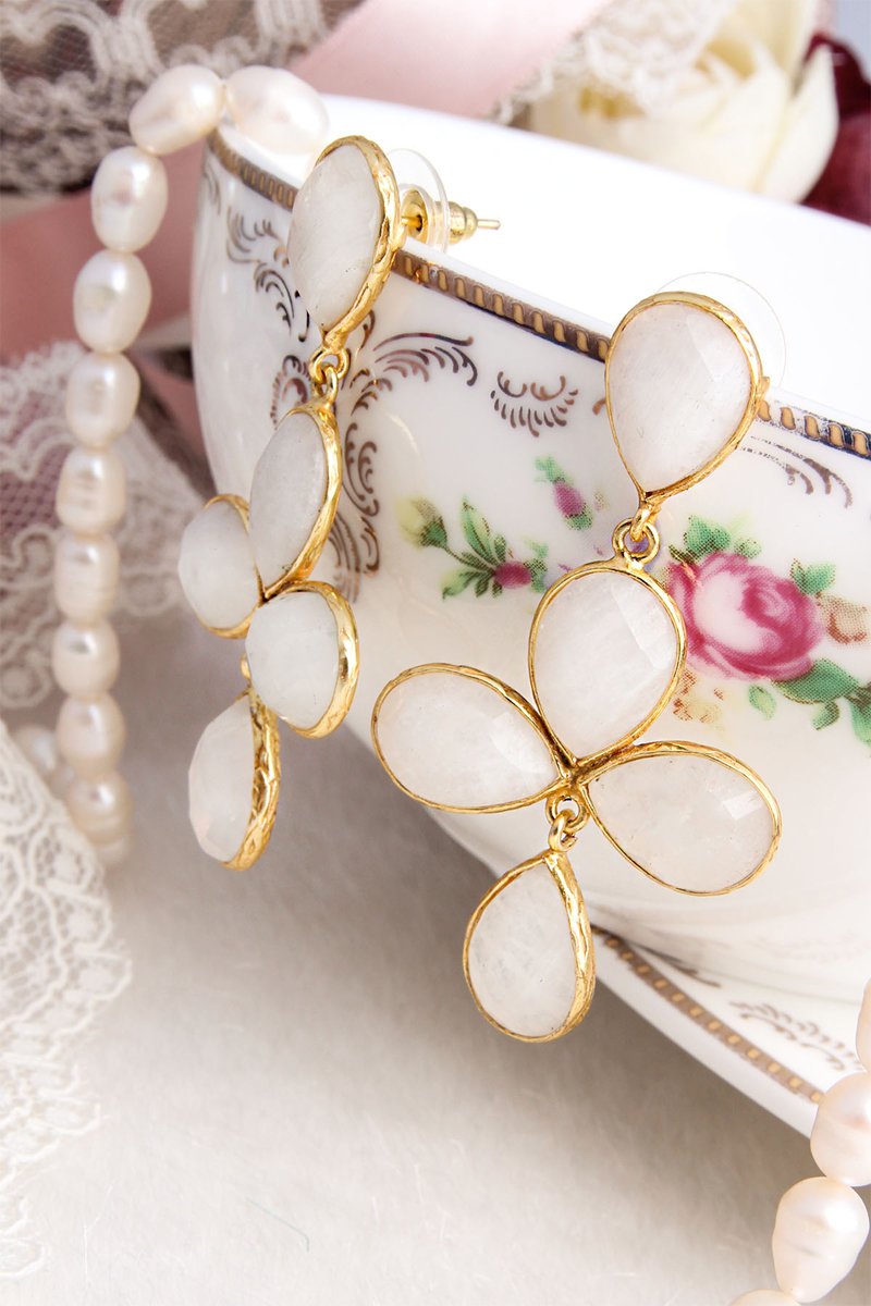 Orecchini pendenti bronzo dorato giallo con pietre di luna.