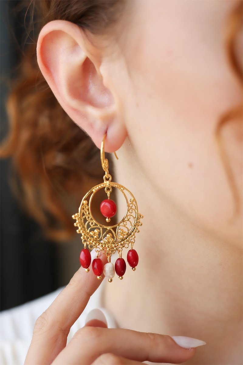 Materiali: ottone placcato oro giallo, rame, corallo e perla coltivata