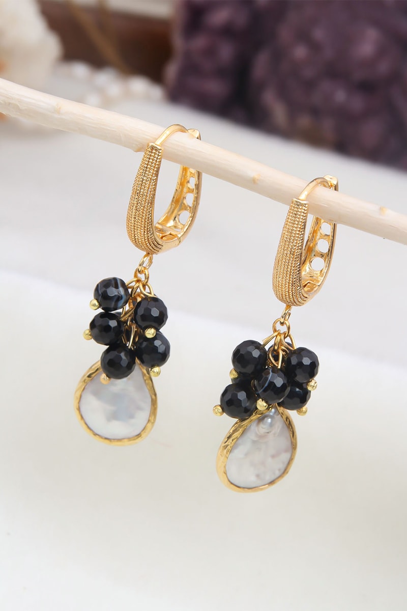Orecchini - Placcato oro giallo, onice e perla coltivata