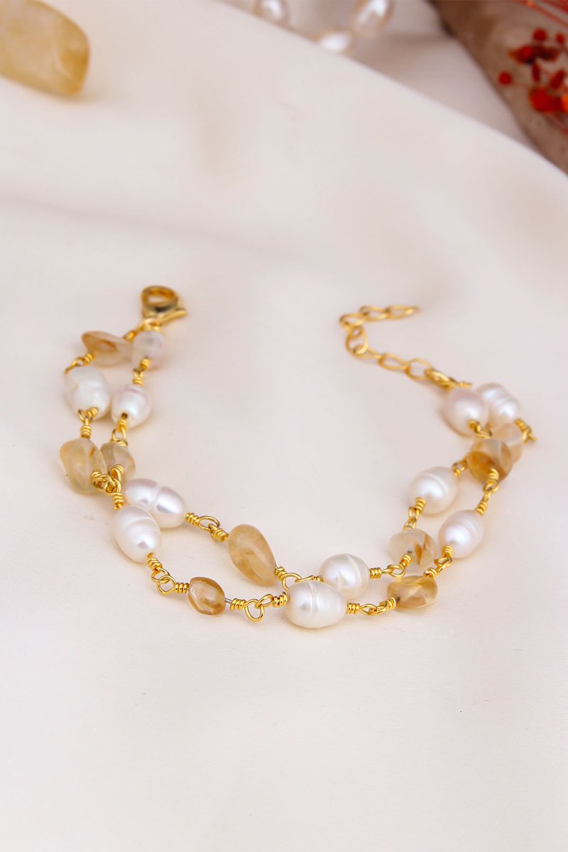 Bracciale con citrini e perle di imitazione.