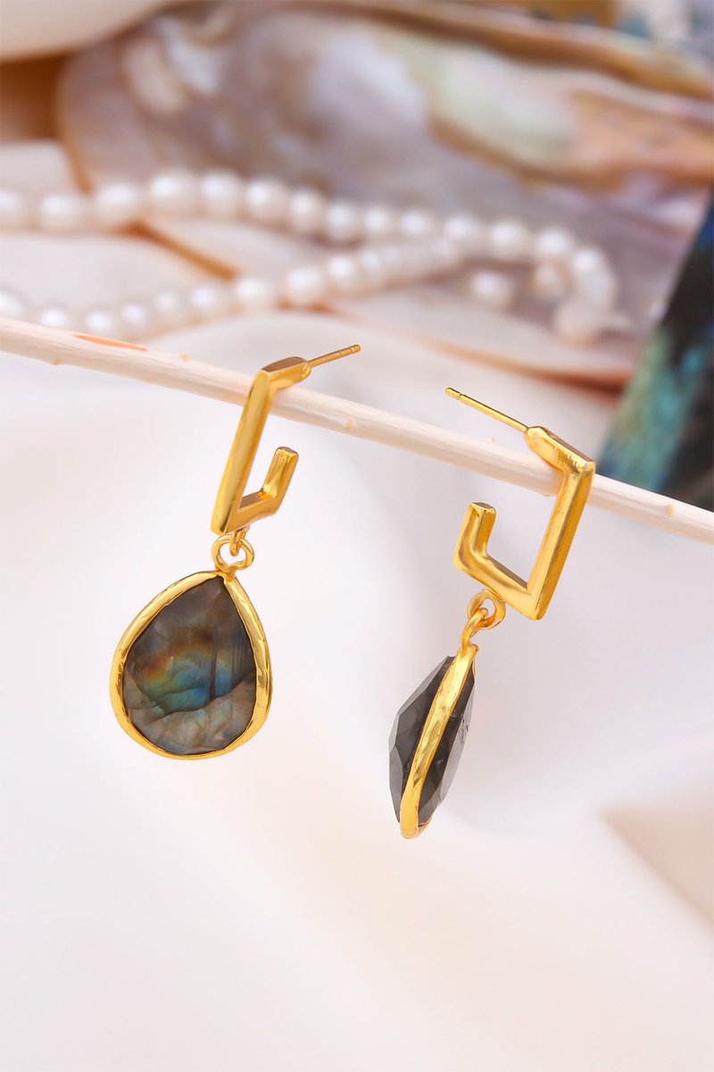 Orecchini pendenti in laminato oro giallo e labradoriti.