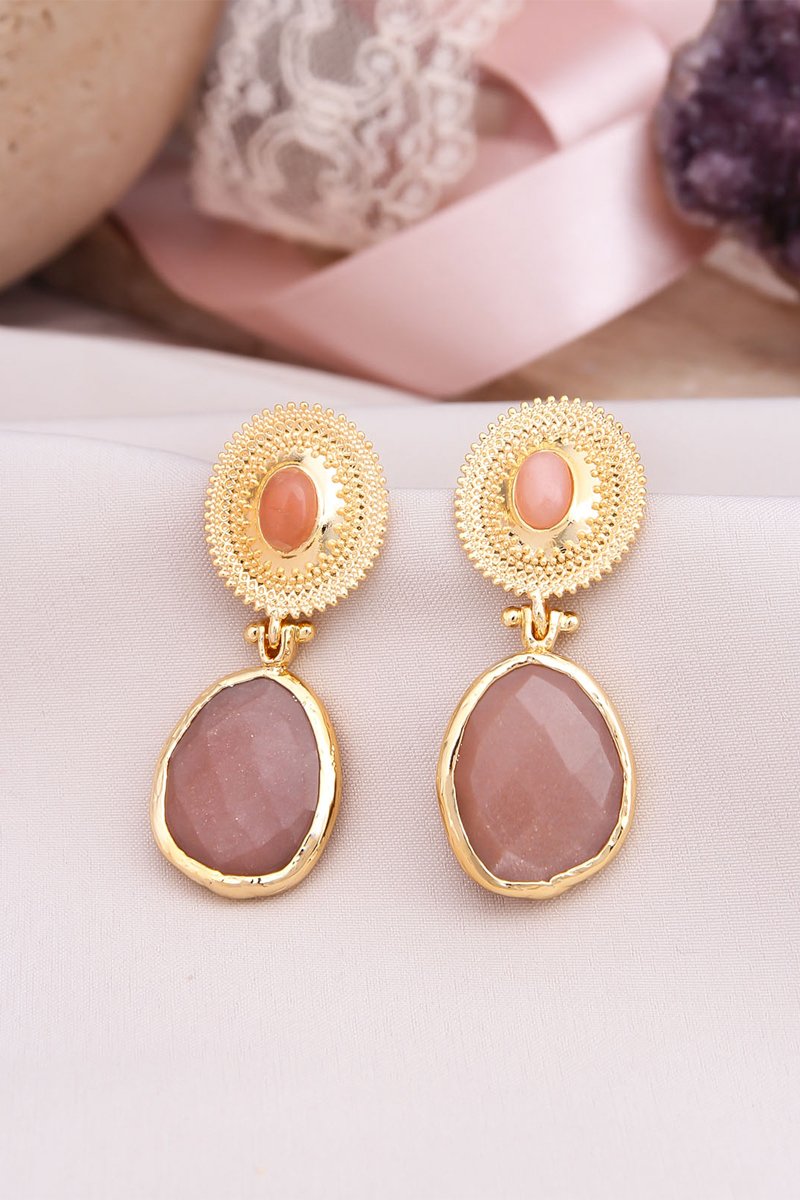 Orecchini laminato oro giallo con una pietra del sole.