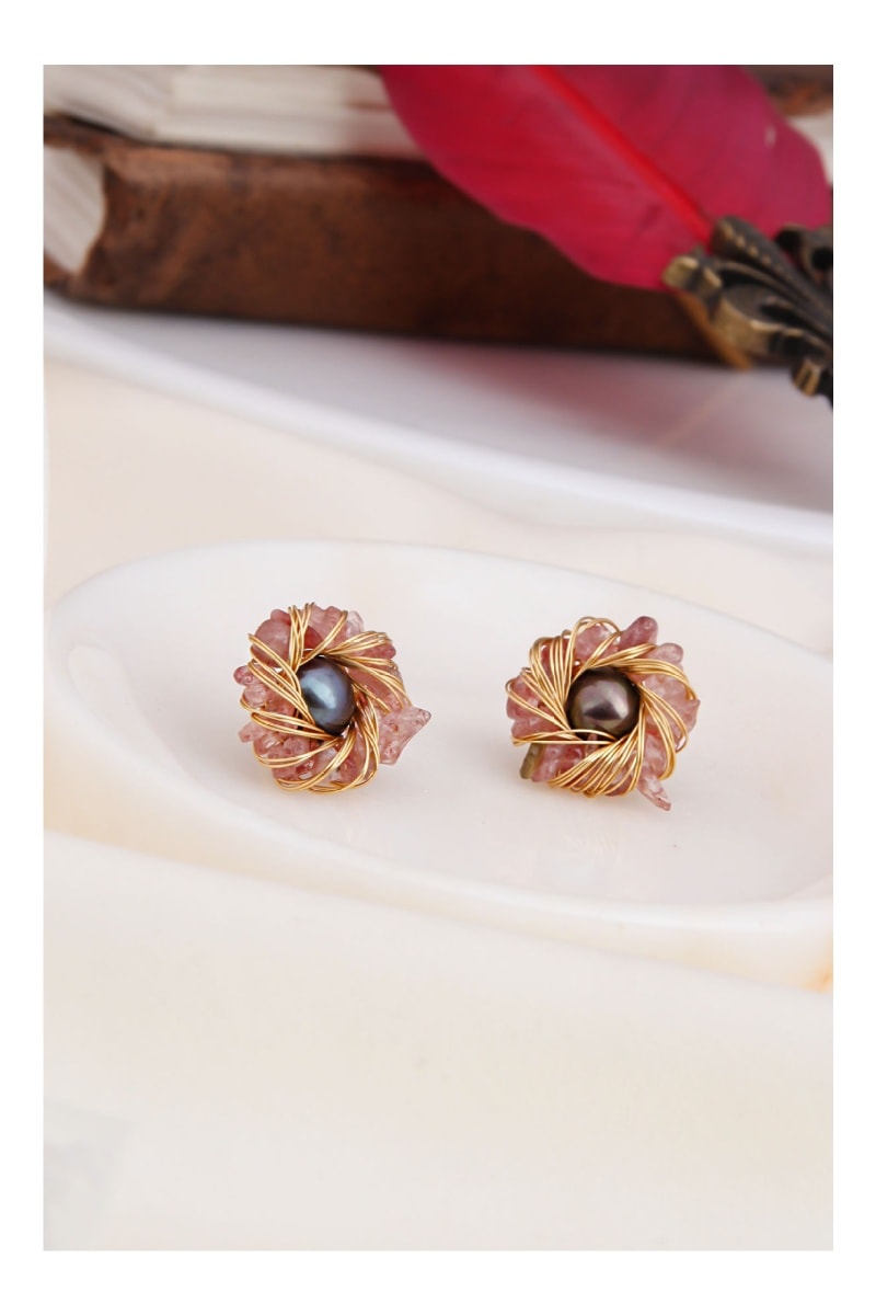 Materiali: ottone, rame, quarzo fragola e perle d’imitazione