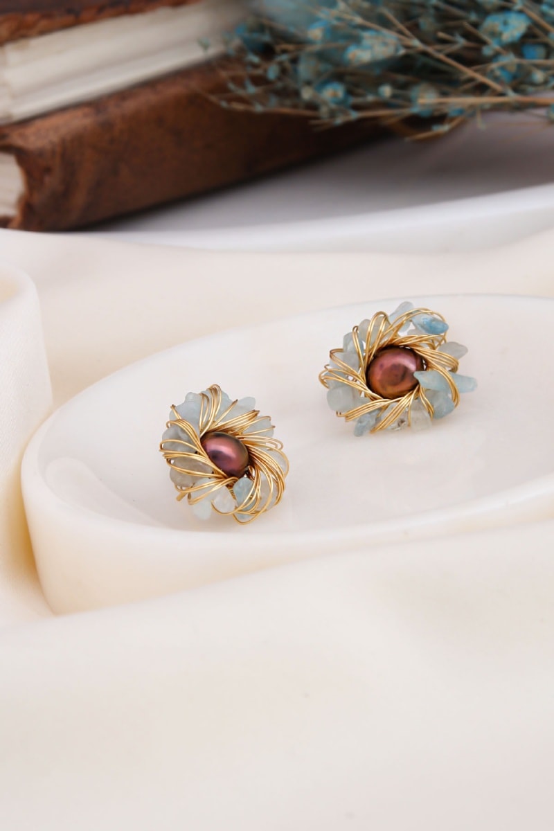 Materiali: ottone placcato oro giallo, opali e perle coltivate