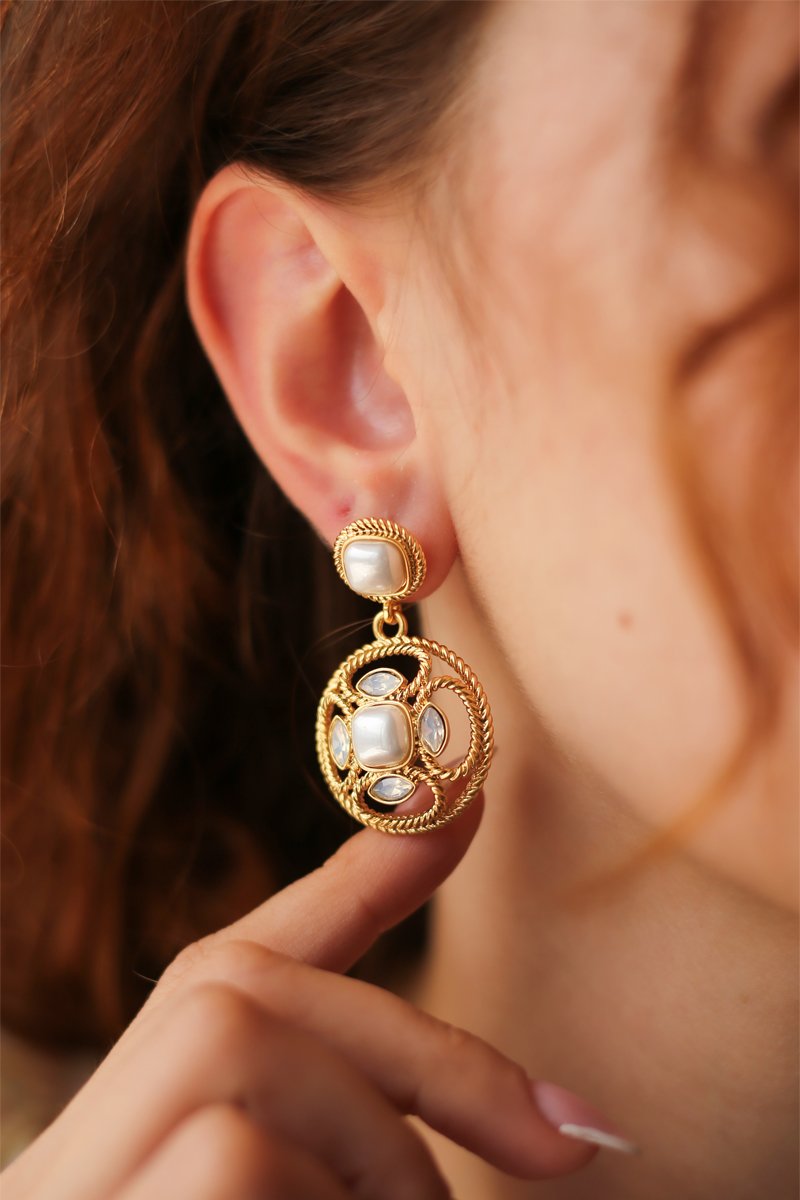 Orecchini laminato oro fino giallo con perle e zirconi.
