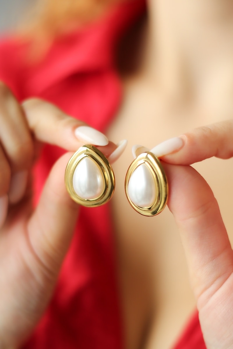 Materiali: acciaio inossidabile placcato oro giallo, ottone placcato oro giallo e perla de culture