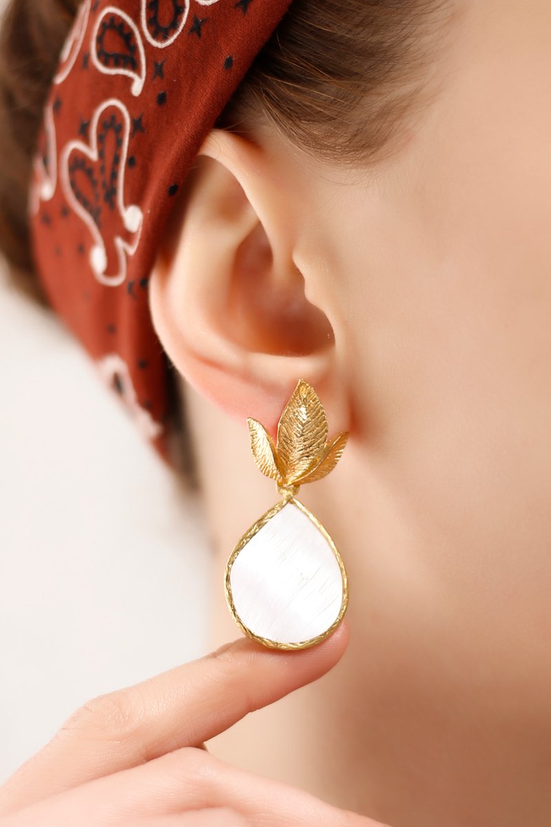 Orecchini in bronzo laminato oro giallo con madreperla.