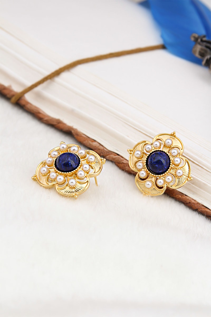 Orecchini con 12 perle di imitazione e un lapislazzuli.