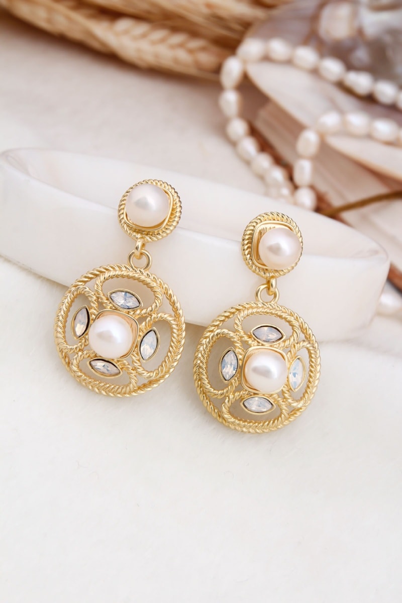 Materiali: ottone placcato oro giallo, perle coltivate e zirconi