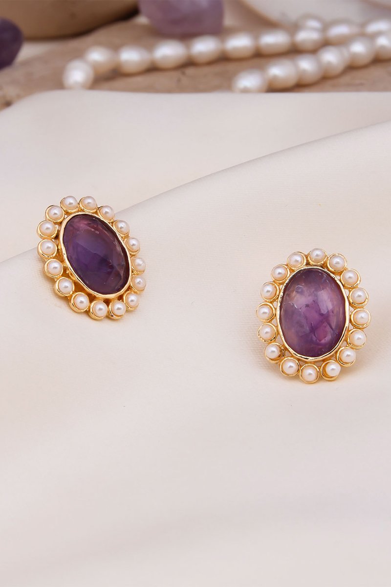 Orecchini con un’ametista e perle di imitazione.