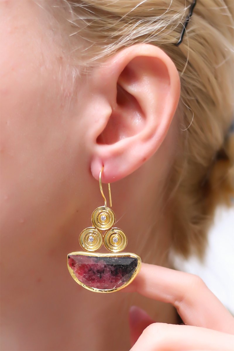Orecchini pendenti con una rodonite.