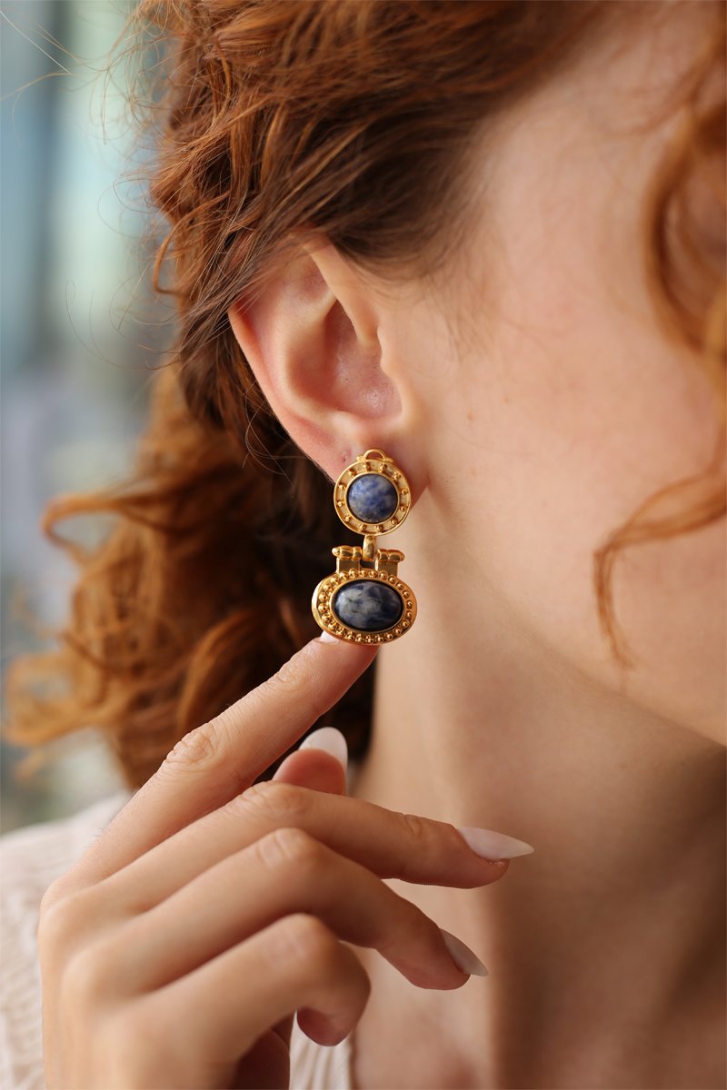 Orecchini laminati oro fino giallo con uno zaffiro.