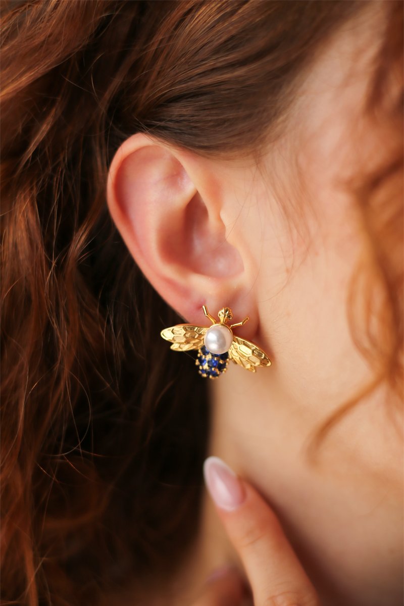 Orecchini laminati oro fino giallo con una perla e zirconi.