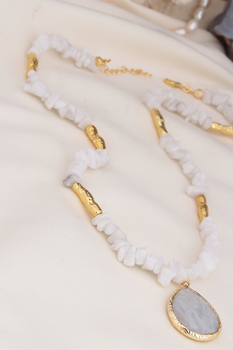 Collana placcato oro giallo con pietre di luna.