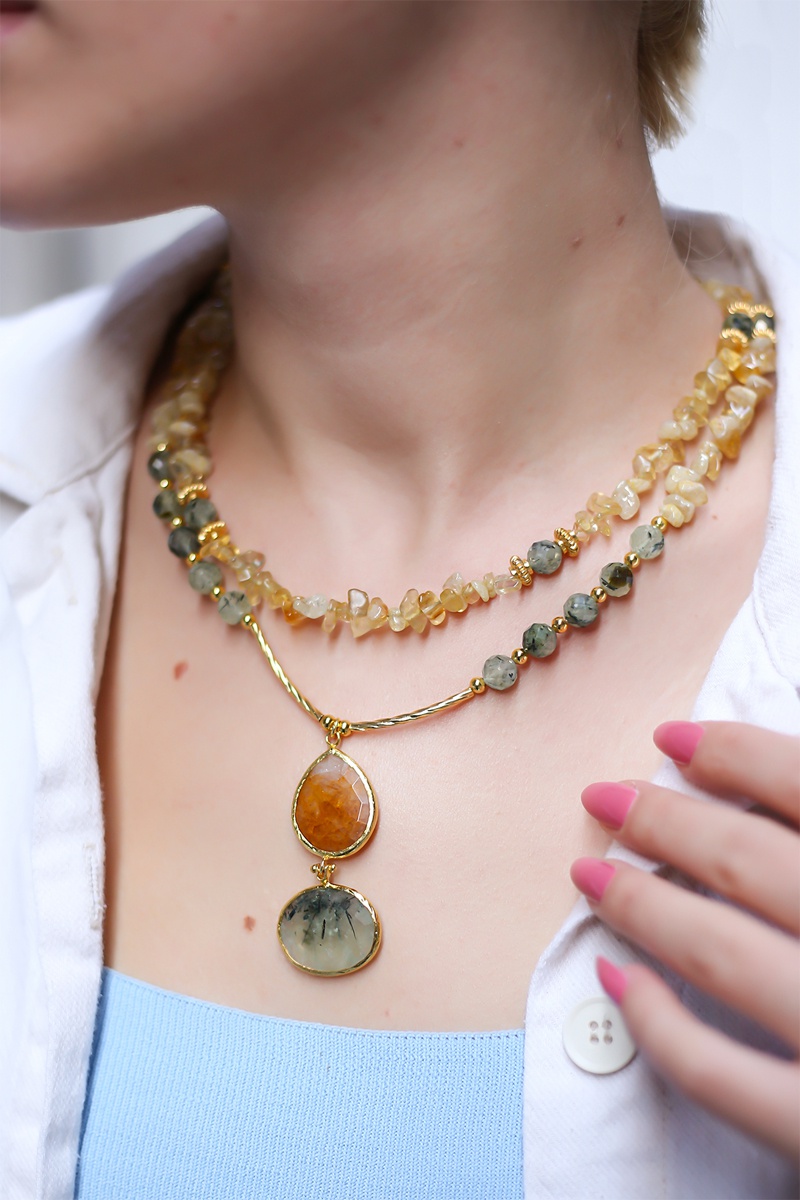 Collana con prehniti e citrini.